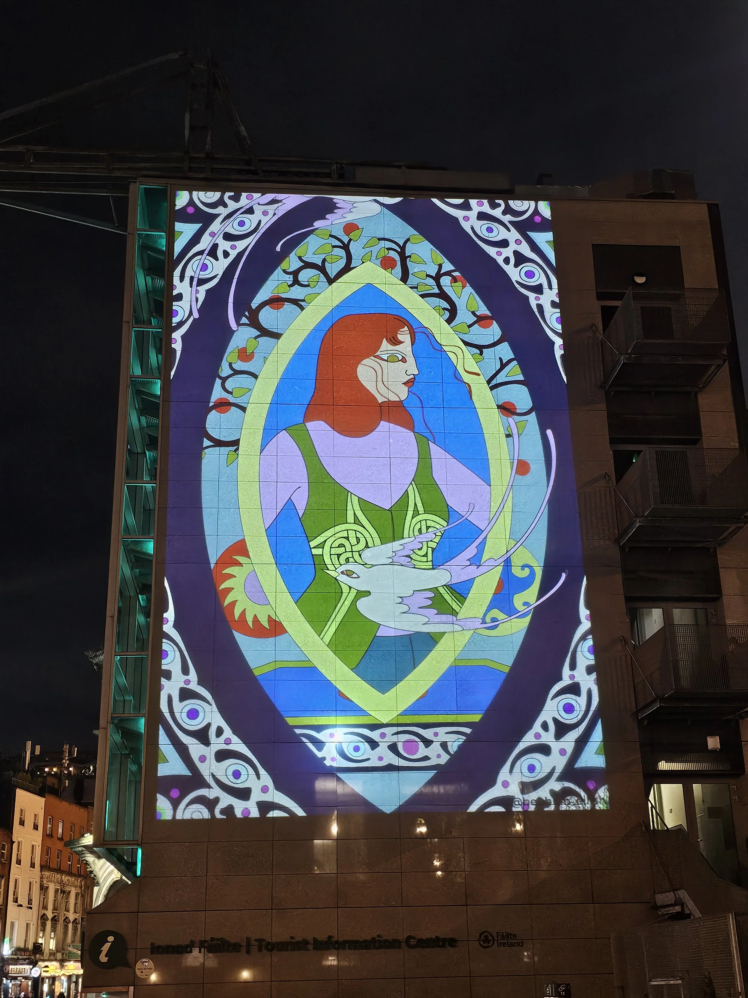 To celebrate the trailblazing female Saint and Goddess Brigid, I created a series of artworks that were projected onto three locations in Dublin during Brigid's weekend. These locations include the iconic and historic General Post Office (GPO), the Hugh Lane Gallery, and Barnardos Square.